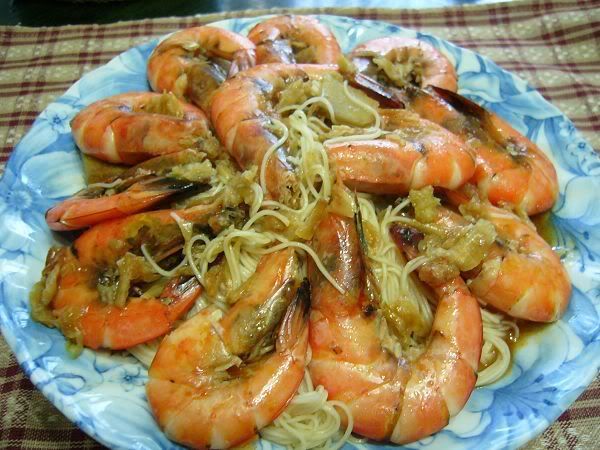 材料:蝦約1斤.老薑1塊.油蔥酥少許.麵線1束