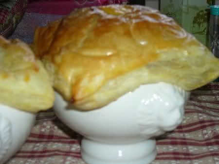 2.等湯涼盛入碗,放上酥皮,塗上蛋黃